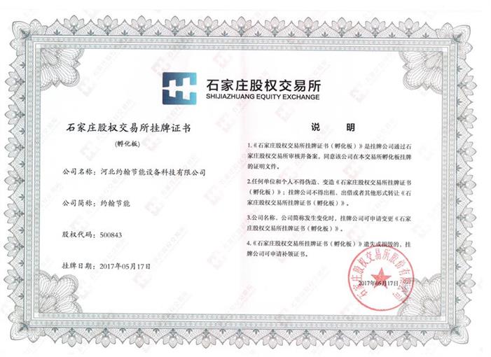 石家庄股权交易所股权证书